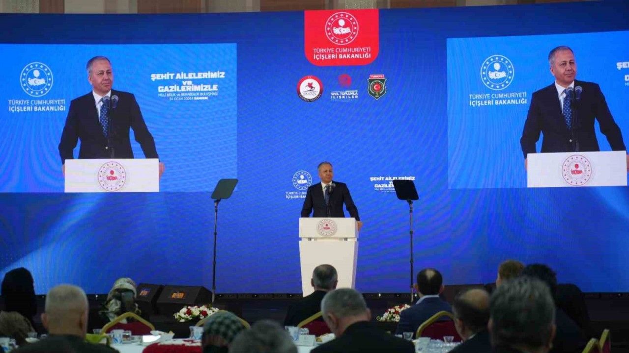Samsun’da gerçekleştirilen "Şehit Aileleri ve Gazilerle Milli Dayanışma, Kardeşlik Buluşması"nda konuşan Bakan Yerlikaya, İçişleri Bakanlığı öncülüğünde ve Türkiye Harp Malulü Gazileri, Şehit Dul ve Yetimleri Derneği iş birliğiyle düzenlenen programların, gönülleri birbirine yaklaştıran güçlü bir milli dayanışma köprüsü olduğunu vurguladı. Bu buluşmaların, devletin şehitlere ve gazilere duyduğu vefa ve minnettarlığın en somut göstergesi olduğunu ifade eden Yerlikaya, bin yıldır vatan kılınan bu toprakların her karışının fedakarlıklarla yoğrulduğunu söyledi.