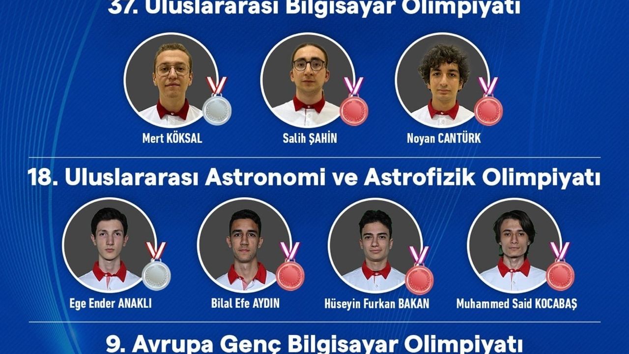 Bakan Kacır, sosyal medya hesabından yaptığı paylaşım ile 32’nci Balkan Bilgisayar Olimpiyatı, 37’nci Uluslararası Bilgisayar Olimpiyatı, 18’inci Uluslararası Astronomi ve Astrofizik Olimpiyatı ile 9’uncu Avrupa Genç Bilgisayar Olimpiyatlarında altın, gümüş ve bronz madalya alan öğrencileri tebrik etti. Kacır, yarışmaların toplamında öğrencilerin 1 altın, 3 gümüş, 8 bronz madalya olmak üzere 12 madalya kazandığını açıkladı.
