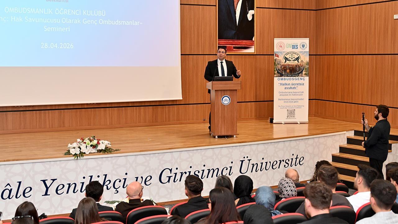 Açılış konuşmalarının ardından Kamu Denetçisi Özcan Yıldız, “Ombudsmanlık Öğrenci Kulübü Ombudsman Genç: Hak Savunucusu Olarak Genç Ombudsmanlar” başlıklı seminerini gerçekleştirdi. Yıldız, sunumunda kamu denetçiliği (ombudsmanlık) mekanizmasının işleyişi, bireylerin hak arama yolları içerisindeki yeri ve önemi ile gençlerin bu süreçlerde üstlenebileceği sorumluluklar hakkında kapsamlı bilgiler verdi. Ayrıca, hak arama kültürünün demokratik toplumların gelişimindeki rolüne dikkat çekerek öğrencilerle deneyimlerini paylaştı.