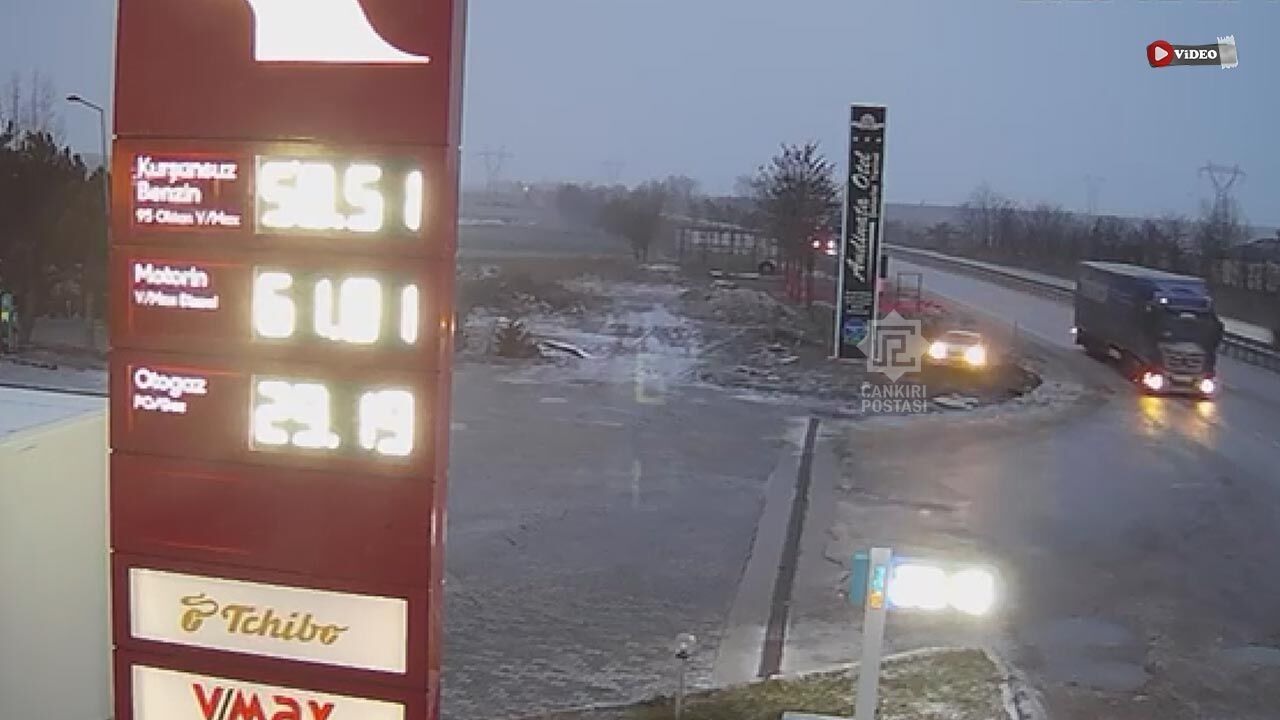 Çankırı’nın Kurşunlu ilçesinde İstanbul–Samsun istikametindeki D-100 Karayolu üzerinde kontrolden çıkan bir otomobil, şarampolden dinlenme tesisine dalarak park halindeki bir tıra çarptı.