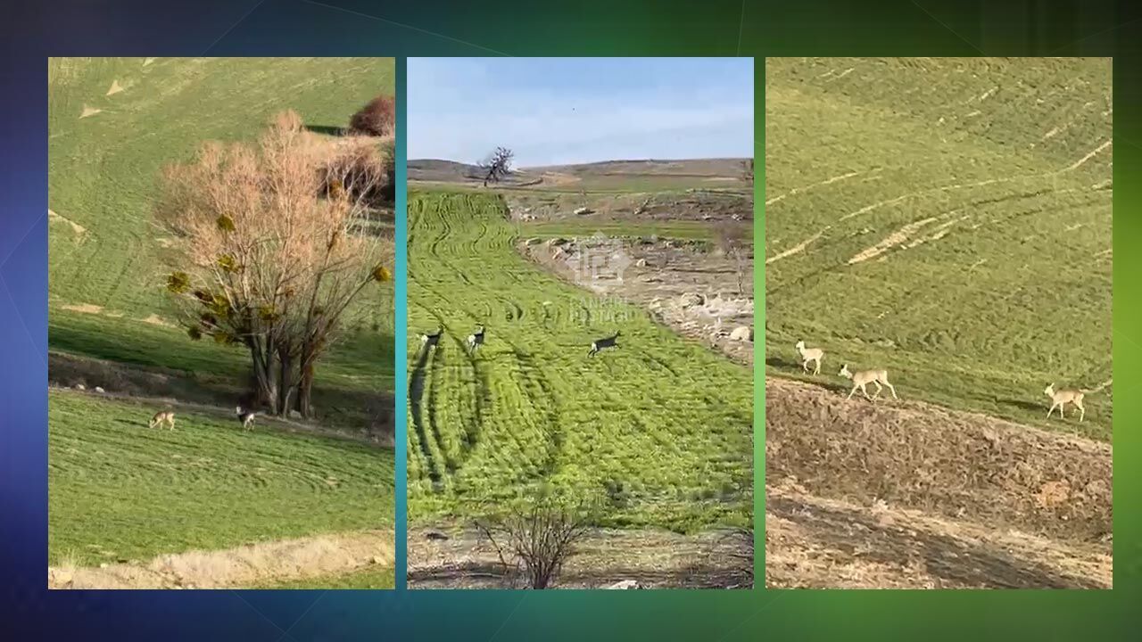 Çerkeş ilçesine bağlı Kadıözü köyü arazisinde görüntülenen üç karaca, yeşeren tarlalarda bir süre yan yana dolaştı. Ardından birbirlerini kovalayarak adeta oyun oynayan karacaların neşeli anları dikkat çekti.