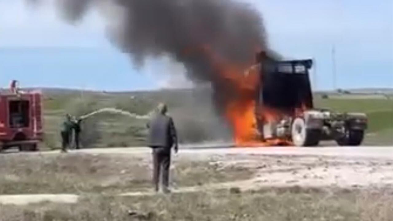 Edinilen bilgilere göre, ilçe güzergâhında ilerleyen bir tırın kabin kısmında henüz bilinmeyen bir nedenle yangın çıktı. Kısa sürede büyüyen alevler tüm aracı sararken, çevrede bulunan vatandaşlar durumu hemen itfaiye ekiplerine bildirdi.