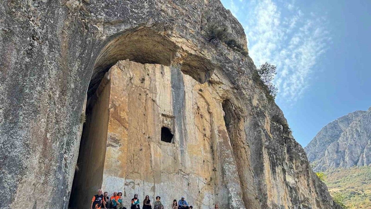 Çorum’un Laçin ilçesi Kırkdilim mevkiinde yer alan ve milattan önce 2’nci yüzyılda yapıldığı düşünülen Kapılıkaya Kaya Mezarı, dik kayalar arasına oyulmuş yapısıyla dikkat çekiyor. Bölgenin en önemli arkeolojik miraslarından biri olarak kabul edilen Kapılıkaya, özellikle tarih meraklıları ve doğaseverlerin ilgisini çekiyor. İl merkezine yaklaşık 27 kilometre uzaklıkta bulunan ve yaklaşık 2 bin yıldan fazla geçmişiyle bölgenin tarihine ışık tutan Kapılıkaya Kaya Mezarı, çevresindeki doğal güzellikleriyle de ziyaretçilerine eşsiz manzaralar sunuyor. Yüksek kayaların arasındaki konumu sayesinde hem tarihi hem de doğayı bir arada görmek isteyenler için cazip bir rota oluşturuyor. Çorum Hitit Üniversitesi Dağcılık Kulübü üyeleri de bölgeyi ziyaret ederek tarihe tanıklık etme fırsatı buldu.