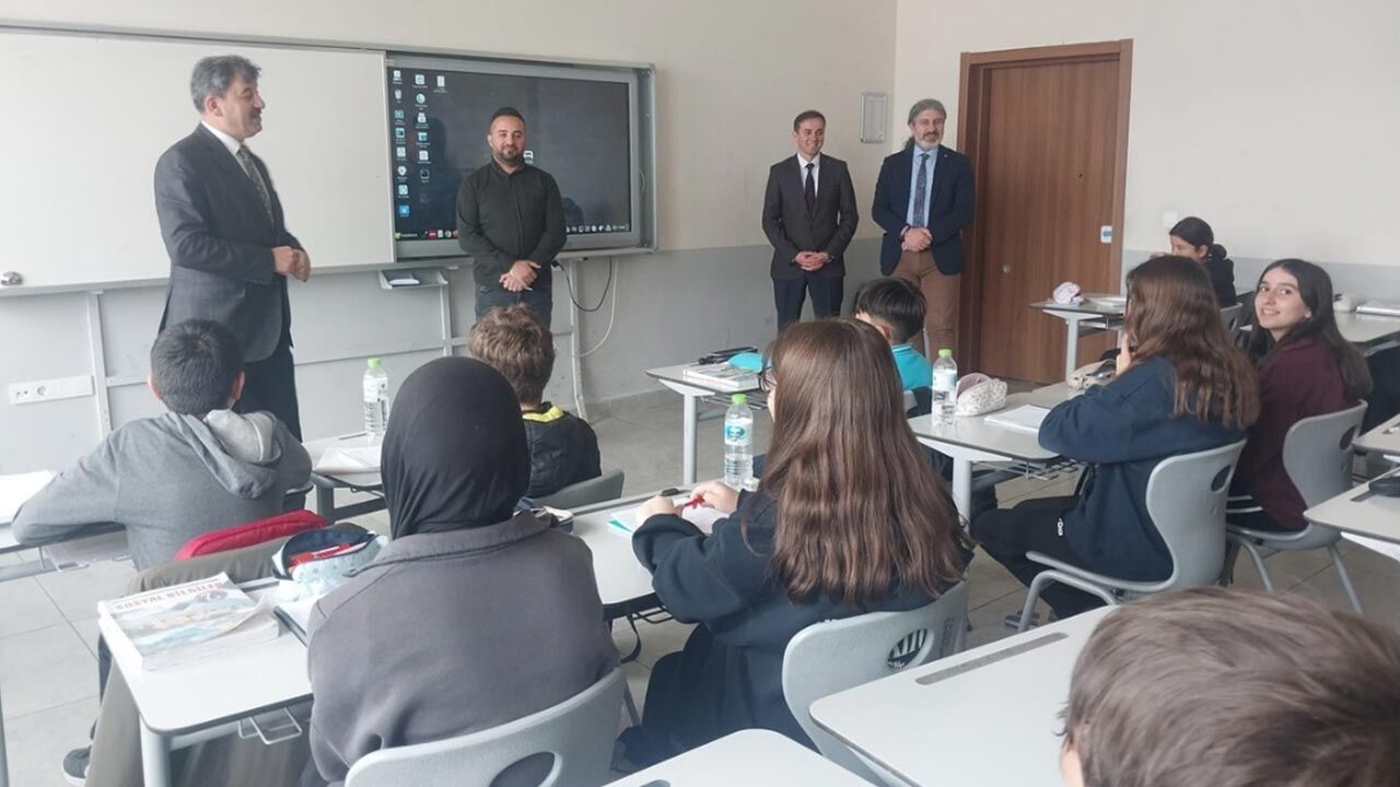 Okul yöneticilerinden kurumun fiziki durumu, yürütülen projeler ve akademik başarıya yönelik çalışmalar hakkında bilgi alan İl Millî Eğitim Müdürü Ayhan Işık, sınıfları da ziyaret ederek öğrencilerin ders içi etkinliklerine eşlik etti.