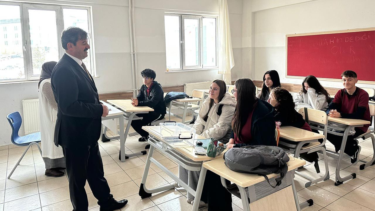Ziyaret kapsamında öğretmenler odasında, okul yöneticisi ve öğretmenlerle bir araya gelen İl Milli Eğitim Müdürü Ayhan Işık, okuldaki eğitim öğretim faaliyetleri, okulda yapılan çalışmalar, Türkiye Yüzyılı Maarif Modeli yaklaşımının öğrenci ve öğretmenler üzerindeki yansımaları konularında değerlendirmelerde bulundu.