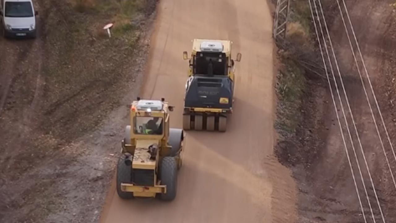 Ekipler, yolun dayanıklılığını artırmak ve asfalt öncesi zemini güçlendirmek amacıyla PMT (Plentmiks Temel) serim çalışmalarını aralıksız sürdürüyor.