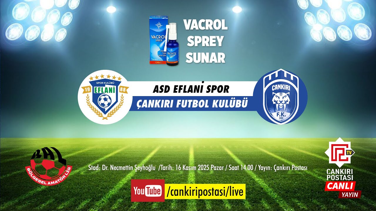 Canlı Yayın ASD Eflani Spor - Çankırı FK | Vacrol Sprey Sunar | CANLI Çankırı Postası TV ekranlarından canlı yayınlanacak olan karşılaşma, 16 Kasım Ekim 2025 Pazar günü saat 13.45’de ekranlarınızda olacak 16.11.2025 - 13:45 16.11.2025 - 13:45 Abone Ol Gelişmelerden haberdar olmak istiyor musunuz? Google News’te Çankırı Postası sitemize abone olun. Abone Ol
