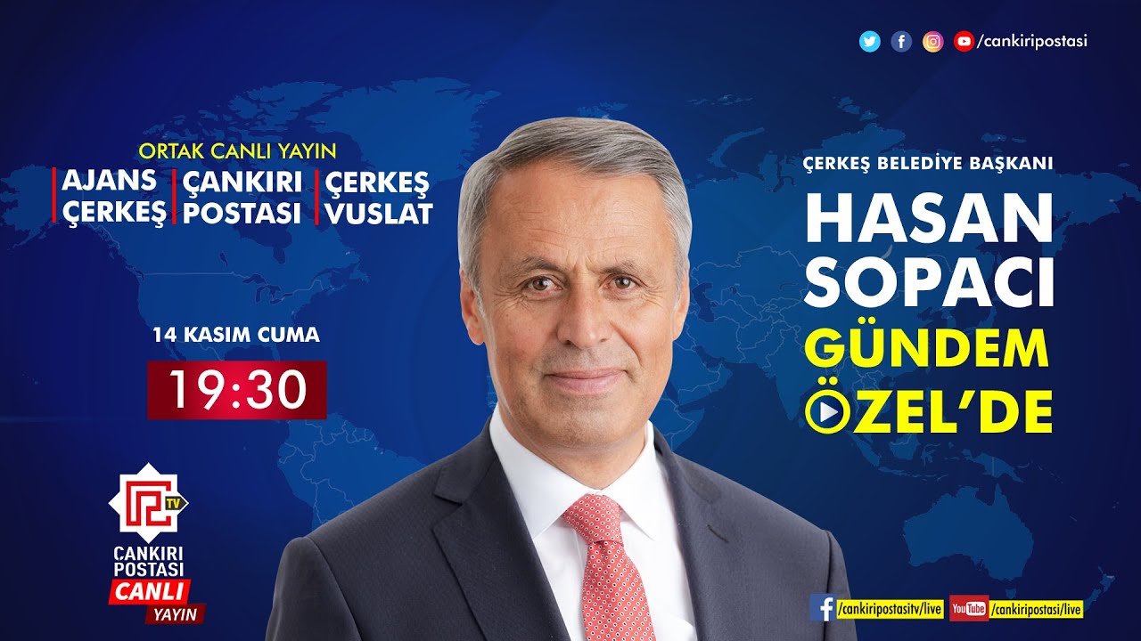 Canlı Yayın Çerkeş Belediye Başkanı Hasan Sopacı | Ortak Canlı Yayın | Canlı Çerkeş Belediye Başkanı Hasan Sopacı, ilçedeki gündeme dair soruları canlı yayında yanıtlayacak. 14.11.2025 - 19:30 14.11.2025 - 19:30 Abone Ol Gelişmelerden haberdar olmak istiyor musunuz? Google News’te Çankırı Postası sitemize abone olun. Abone Ol